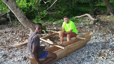 Chris just sitting with John.. He had just made this canoe. It took him one week to carve it out.